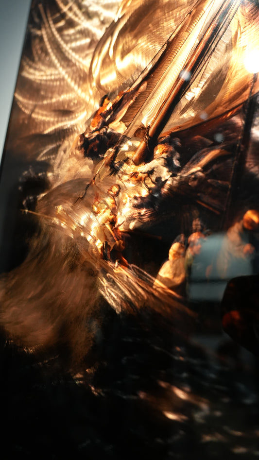"Girl with a Mandolin" Dye Sublimation Print on Hand-Ground Copper Substrate