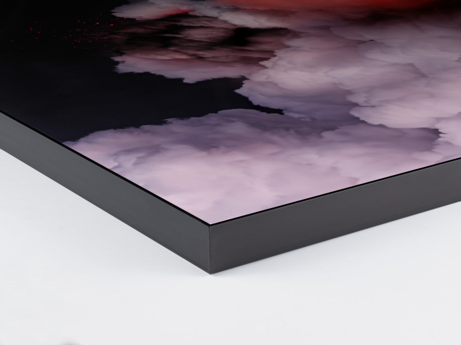 Your artwork is mounted in a 1¼-inch thick frame that adds depth to your print by separating it from the wall with a bold black border. The front-on view is unobstructed.